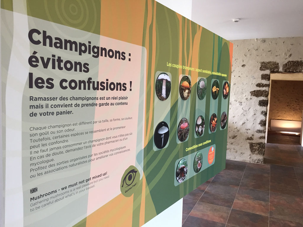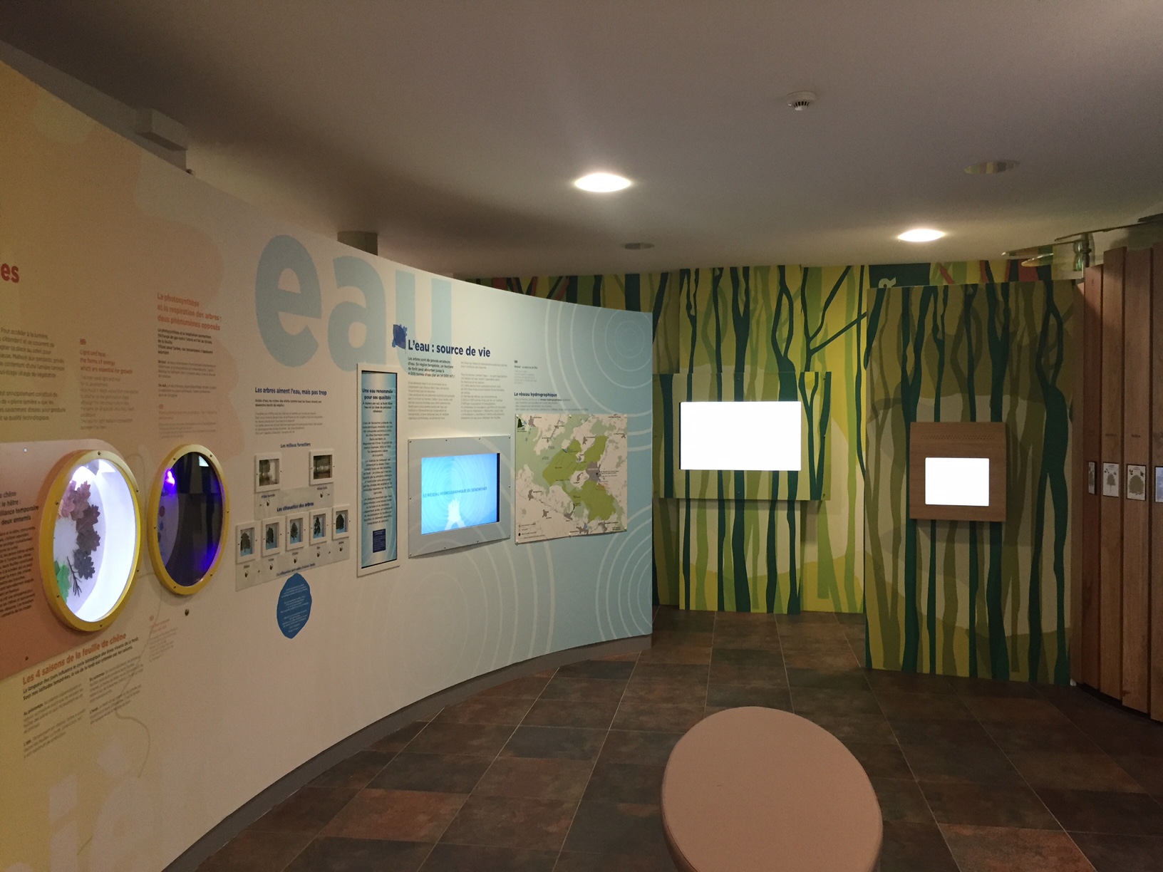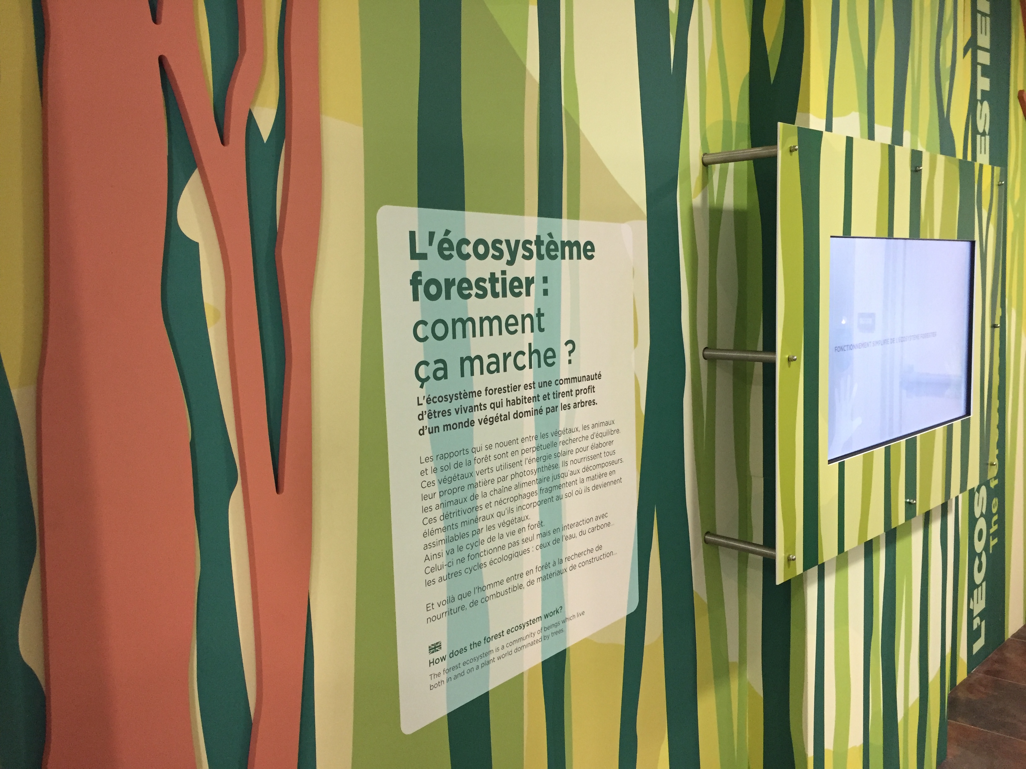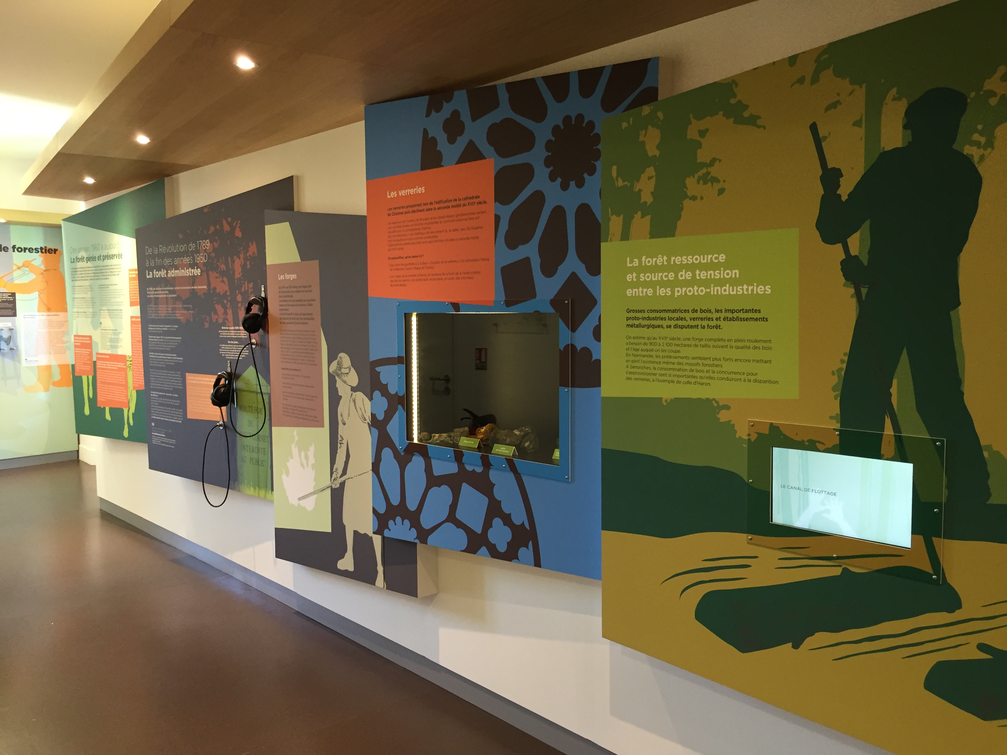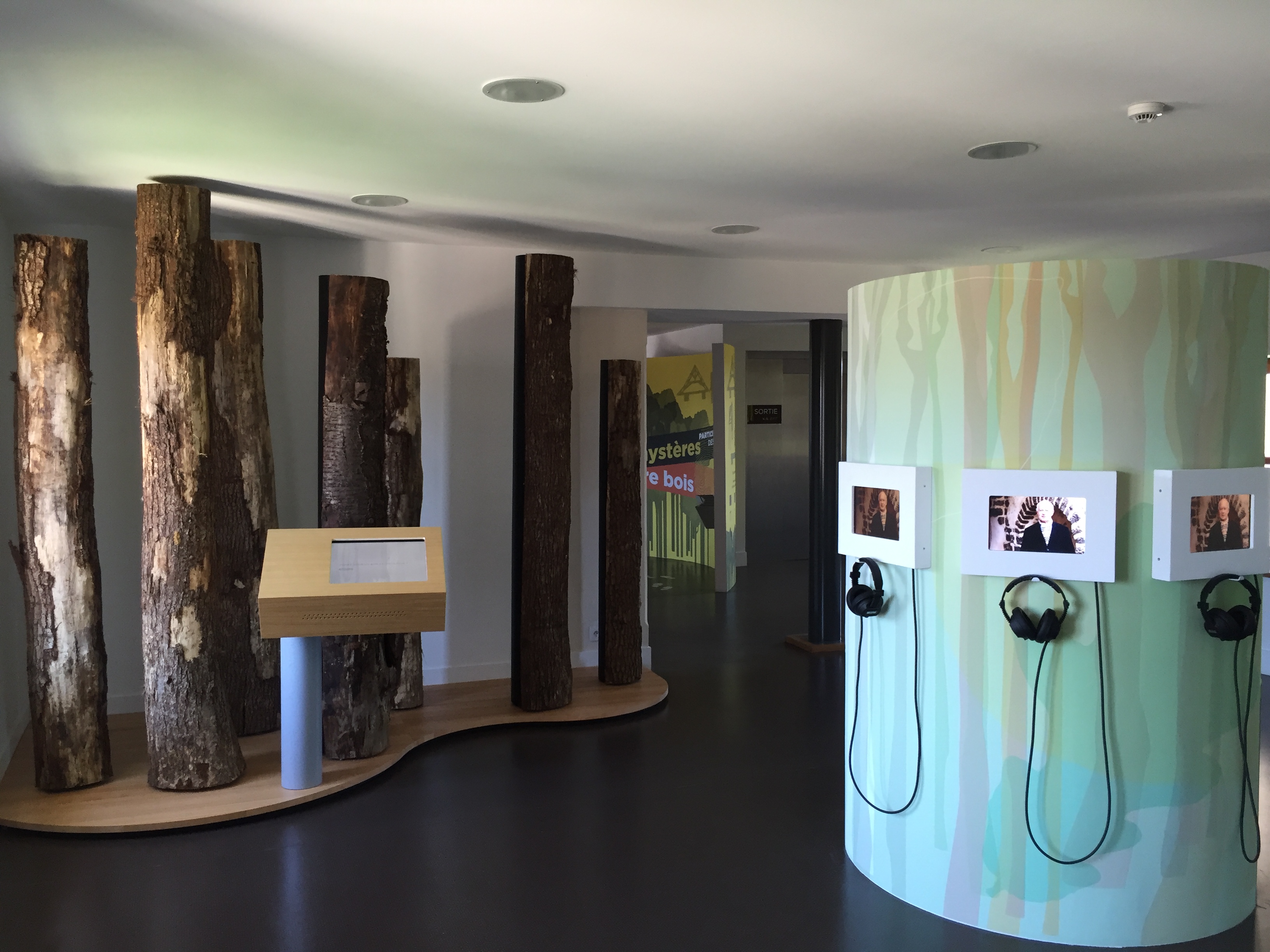 – Des écrans illustrant des interviews de personnalités et usagers de la forêt.